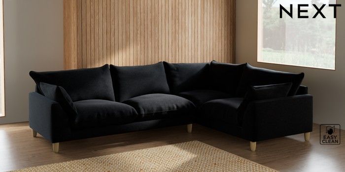7.2.6 Buy Noa Deep Relaxed Sit Large Corner Sofa - Right Hand Fine Chenille Easy Clean Black High Leg - Light from the Laura Ashley online shop Click here to use our website with more accessibility support, for example screen readers