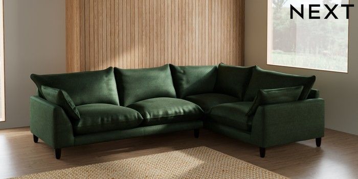 7.2.6 Buy Noa Deep Relaxed Sit Large Corner Sofa - Right Hand Luxe Chenille Dark Green High Leg - Dark from the Laura Ashley online shop Click here to use our website with more accessibility support, for example screen readers