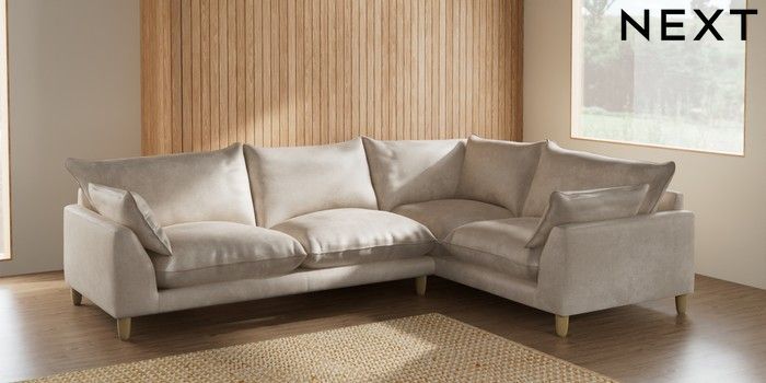 7.2.6 Buy Noa Deep Relaxed Sit Large Corner Sofa - Right Hand Plush Chenille Oyster High Leg - Light from the Laura Ashley online shop Click here to use our website with more accessibility support, for example screen readers