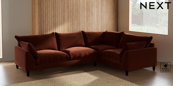 7.2.6 Buy Noa Deep Relaxed Sit Large Corner Sofa - Right Hand Plush Velvet Easy Clean Ginger Orange High Leg - Dark from the Laura Ashley online shop Click here to use our website with more accessibility support, for example screen readers
