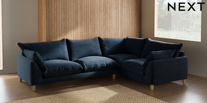 7.2.6 Buy Noa Deep Relaxed Sit Large Corner Sofa - Right Hand Ripple Chenille Dark Blue High Leg - Light from the Laura Ashley online shop Click here to use our website with more accessibility support, for example screen readers