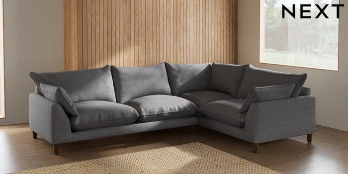 7.2.6 Buy Noa Deep Relaxed Sit Large Corner Sofa - Right Hand Studio Chenille Mid Grey High Leg - Mid from the Laura Ashley online shop Click here to use our website with more accessibility support, for example screen readers