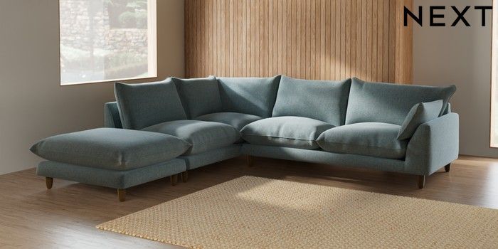 7.2.6 Buy Noa Deep Relaxed Sit Large Open End Corner Chaise - Left Hand Chunky Marl Mid Blue High Leg - Mid from the Laura Ashley online shop Click here to use our website with more accessibility support, for example screen readers
