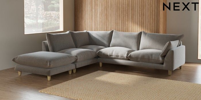 7.2.6 Buy Noa Deep Relaxed Sit Large Open End Corner Chaise - Left Hand Chunky Weave Dove Grey High Leg - Light from the Laura Ashley online shop Click here to use our website with more accessibility support, for example screen readers