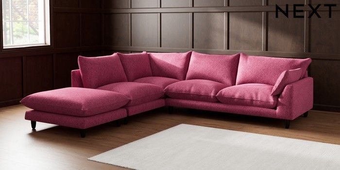 7.2.6 Buy Noa Deep Relaxed Sit Large Open End Corner Chaise - Left Hand Cotswold Chenille Dark Raspberry Pink High Leg - Dark from the Laura Ashley online shop Click here to use our website with more accessibility support, for example screen readers