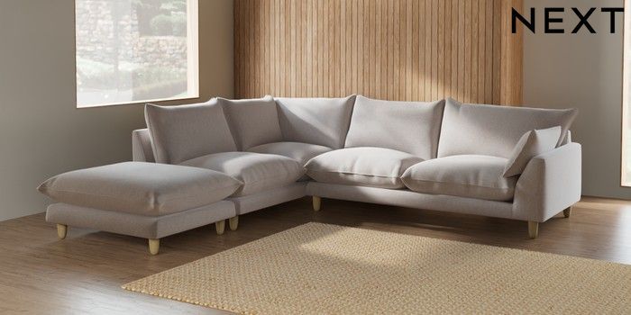 7.2.6 Buy Noa Deep Relaxed Sit Large Open End Corner Chaise - Left Hand Cotswold Chenille Oyster High Leg - Light from the Laura Ashley online shop Click here to use our website with more accessibility support, for example screen readers