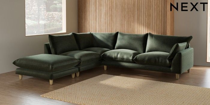 7.2.6 Buy Noa Deep Relaxed Sit Large Open End Corner Chaise - Left Hand Luxe Chenille Mid Green High Leg - Light from the Laura Ashley online shop Click here to use our website with more accessibility support, for example screen readers