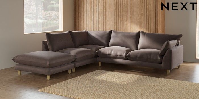 7.2.6 Buy Noa Deep Relaxed Sit Large Open End Corner Chaise - Left Hand Luxe Chenille Mink Brown High Leg - Light from the Laura Ashley online shop Click here to use our website with more accessibility support, for example screen readers