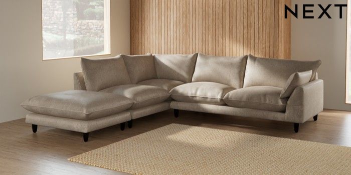 7.2.6 Buy Noa Deep Relaxed Sit Large Open End Corner Chaise - Left Hand Plush Chenille Light Natural High Leg - Dark from the Laura Ashley online shop Click here to use our website with more accessibility support, for example screen readers
