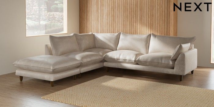 7.2.6 Buy Noa Deep Relaxed Sit Large Open End Corner Chaise - Left Hand Plush Chenille Oyster High Leg - Mid from the Laura Ashley online shop Click here to use our website with more accessibility support, for example screen readers