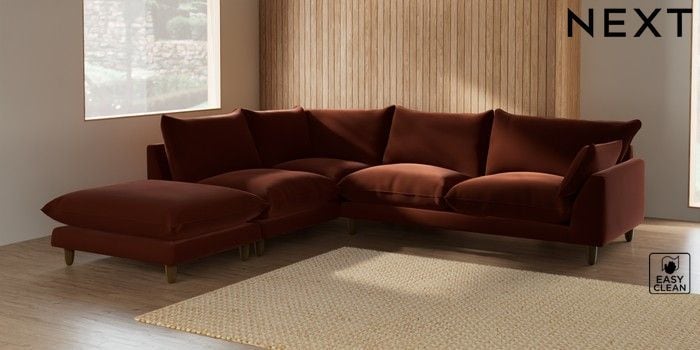 7.2.6 Buy Noa Deep Relaxed Sit Large Open End Corner Chaise - Left Hand Plush Velvet Easy Clean Ginger Orange High Leg - Mid from the Laura Ashley online shop Click here to use our website with more accessibility support, for example screen readers