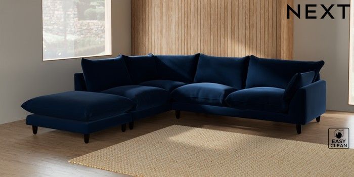 7.2.6 Buy Noa Deep Relaxed Sit Large Open End Corner Chaise - Left Hand Plush Velvet Easy Clean Navy Blue High Leg - Dark from the Laura Ashley online shop Click here to use our website with more accessibility support, for example screen readers
