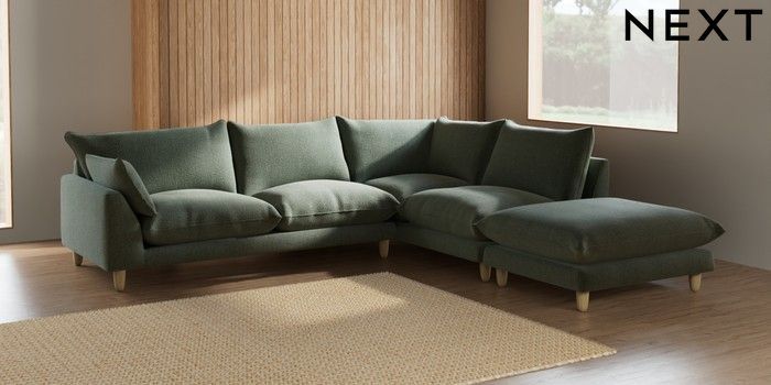 7.2.6 Buy Noa Deep Relaxed Sit Large Open End Corner Chaise - Right Hand Chunky Texture Mid Forest Green High Leg - Light from the Laura Ashley online shop Click here to use our website with more accessibility support, for example screen readers