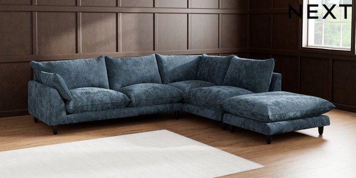 7.2.6 Buy Noa Deep Relaxed Sit Large Open End Corner Chaise - Right Hand Distressed Velour Midnight Blue High Leg - Dark from the Laura Ashley online shop Click here to use our website with more accessibility support, for example screen readers