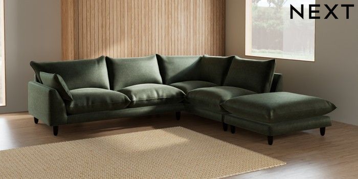 7.2.6 Buy Noa Deep Relaxed Sit Large Open End Corner Chaise - Right Hand Luxe Chenille Mid Green High Leg - Dark from the Laura Ashley online shop Click here to use our website with more accessibility support, for example screen readers