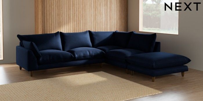 7.2.6 Buy Noa Deep Relaxed Sit Large Open End Corner Chaise - Right Hand Luxe Chenille Navy Blue High Leg - Mid from the Laura Ashley online shop Click here to use our website with more accessibility support, for example screen readers