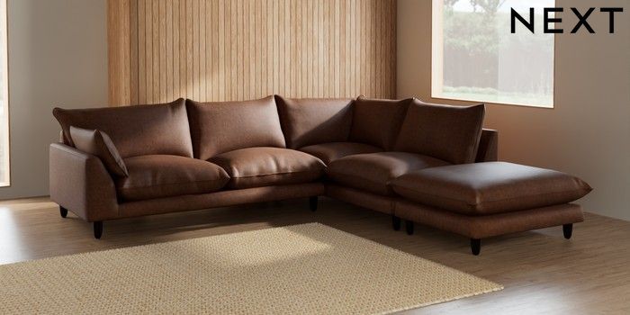 7.2.6 Buy Noa Deep Relaxed Sit Large Open End Corner Chaise - Right Hand Monza Faux Leather Easy Clean Chestnut Brown High Leg - Dark from the Laura Ashley online shop Click here to use our website with more accessibility support, for example screen readers