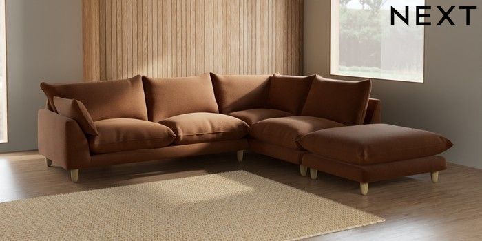 7.2.6 Buy Noa Deep Relaxed Sit Large Open End Corner Chaise - Right Hand Ripple Chenille Mid Rust Brown High Leg - Light from the Laura Ashley online shop Click here to use our website with more accessibility support, for example screen readers
