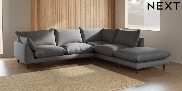7.2.6 Buy Noa Deep Relaxed Sit Large Open End Corner Chaise - Right Hand Studio Chenille Mid Grey High Leg - Mid from the Laura Ashley online shop Click here to use our website with more accessibility support, for example screen readers