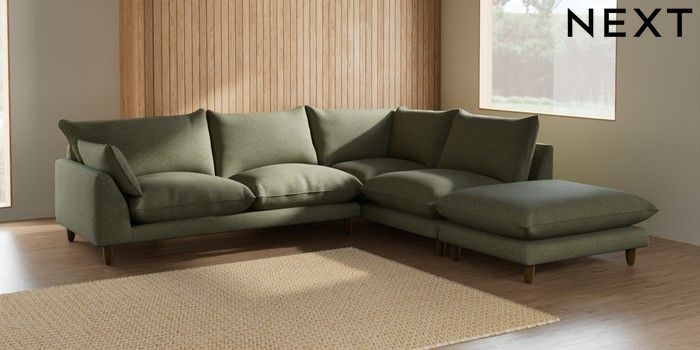 7.2.6 Buy Noa Deep Relaxed Sit Large Open End Corner Chaise - Right Hand Tweedy Chenille Mid Moss Green High Leg - Mid from the Laura Ashley online shop Click here to use our website with more accessibility support, for example screen readers
