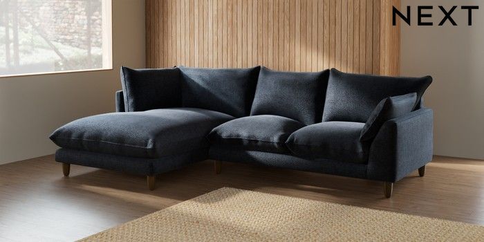 7.2.6 Buy Noa Deep Relaxed Sit Medium Corner Chaise - Left Hand Boucle Chenille Dark Slate Blue High Leg - Dark from the Laura Ashley online shop Click here to use our website with more accessibility support, for example screen readers