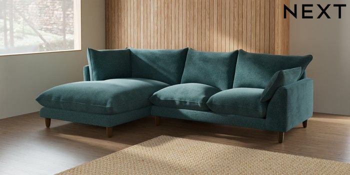 7.2.6 Buy Noa Deep Relaxed Sit Medium Corner Chaise - Left Hand Chunky Chenille Mid Teal Green High Leg - Light from the Laura Ashley online shop Click here to use our website with more accessibility support, for example screen readers