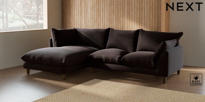 7.2.6 Buy Noa Deep Relaxed Sit Medium Corner Chaise - Left Hand Fine Chenille Easy Clean Chocolate Brown High Leg - Dark from the Laura Ashley online shop Click here to use our website with more accessibility support, for example screen readers