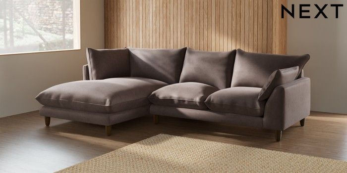 7.2.6 Buy Noa Deep Relaxed Sit Medium Corner Chaise - Left Hand Luxe Chenille Mink Brown High Leg - Mid from the Laura Ashley online shop Click here to use our website with more accessibility support, for example screen readers