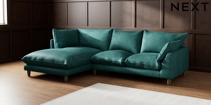 7.2.6 Buy Noa Deep Relaxed Sit Medium Corner Chaise - Left Hand Plush Chenille Dark Teal Green High Leg - Dark from the Laura Ashley online shop Click here to use our website with more accessibility support, for example screen readers