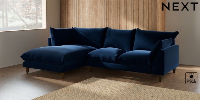 7.2.6 Buy Noa Deep Relaxed Sit Medium Corner Chaise - Left Hand Plush Velvet Easy Clean Navy Blue High Leg - Mid from the Laura Ashley online shop Click here to use our website with more accessibility support, for example screen readers