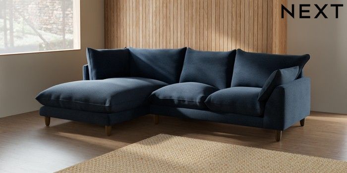7.2.6 Buy Noa Deep Relaxed Sit Medium Corner Chaise - Left Hand Ripple Chenille Dark Blue High Leg - Dark from the Laura Ashley online shop Click here to use our website with more accessibility support, for example screen readers