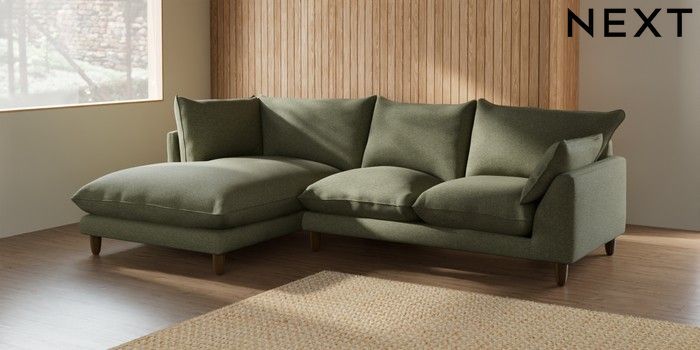 7.2.6 Buy Noa Deep Relaxed Sit Medium Corner Chaise - Left Hand Tweedy Chenille Mid Moss Green High Leg - Mid from the Laura Ashley online shop Click here to use our website with more accessibility support, for example screen readers