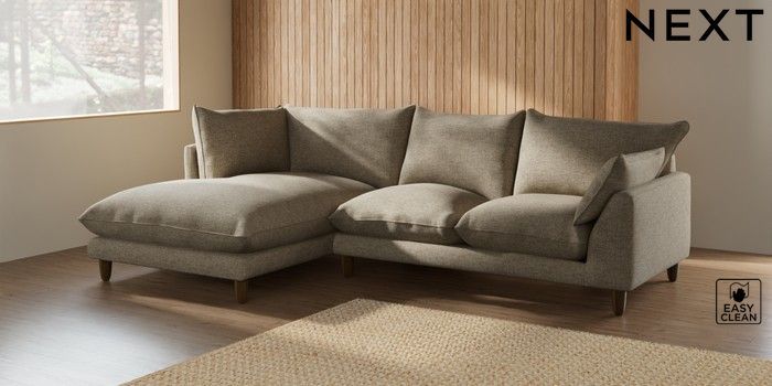 7.2.6 Buy Noa Deep Relaxed Sit Medium Corner Chaise - Left Hand Woven Chenille Easy Clean Mid Natural High Leg - Dark from the Laura Ashley online shop Click here to use our website with more accessibility support, for example screen readers