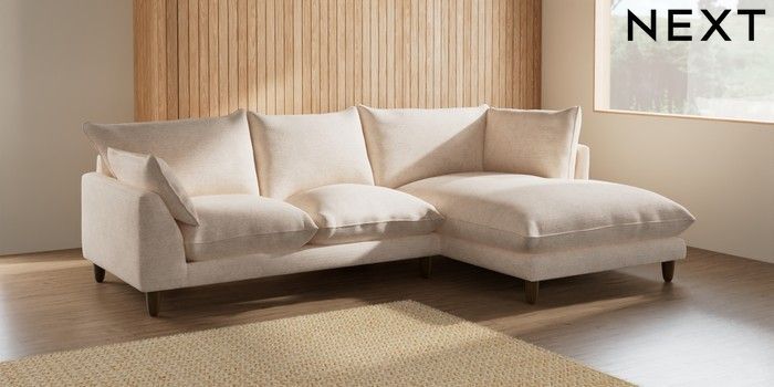 7.2.6 Buy Noa Deep Relaxed Sit Medium Corner Chaise - Right Hand Boucle Chenille Oyster High Leg - Mid from the Laura Ashley online shop Click here to use our website with more accessibility support, for example screen readers