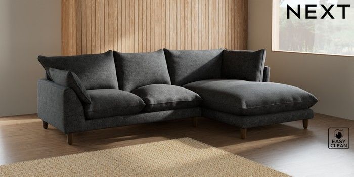 7.2.6 Buy Noa Deep Relaxed Sit Medium Corner Chaise - Right Hand Boucle Weave Easy Clean Charcoal Grey High Leg - Mid from the Laura Ashley online shop Click here to use our website with more accessibility support, for example screen readers