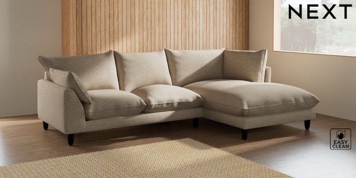 7.2.6 Buy Noa Deep Relaxed Sit Medium Corner Chaise - Right Hand Boucle Weave Easy Clean Dark Natural High Leg - Dark from the Laura Ashley online shop Click here to use our website with more accessibility support, for example screen readers