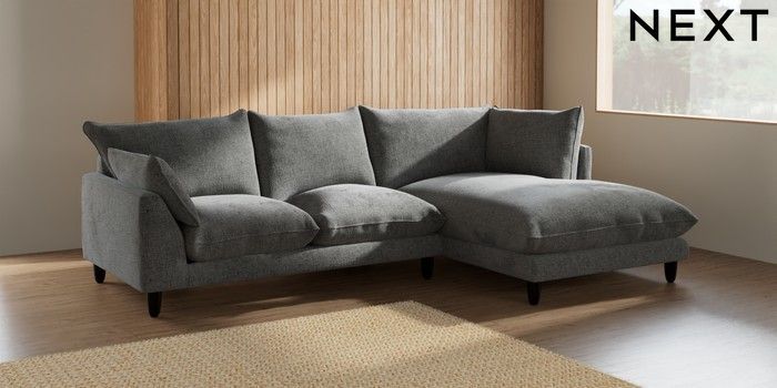 7.2.6 Buy Noa Deep Relaxed Sit Medium Corner Chaise - Right Hand Chunky Chenille Dark Grey High Leg - Dark from the Laura Ashley online shop Click here to use our website with more accessibility support, for example screen readers