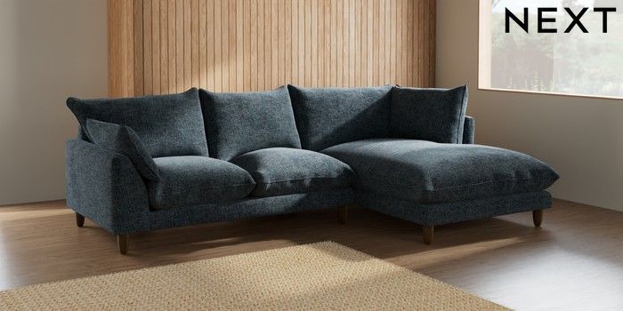 7.2.6 Buy Noa Deep Relaxed Sit Medium Corner Chaise - Right Hand Chunky Chenille Dark Navy Blue High Leg - Mid from the Laura Ashley online shop Click here to use our website with more accessibility support, for example screen readers