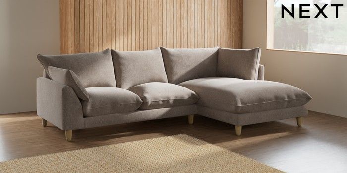 7.2.6 Buy Noa Deep Relaxed Sit Medium Corner Chaise - Right Hand Chunky Chenille Light Dove High Leg - Light from the Laura Ashley online shop Click here to use our website with more accessibility support, for example screen readers