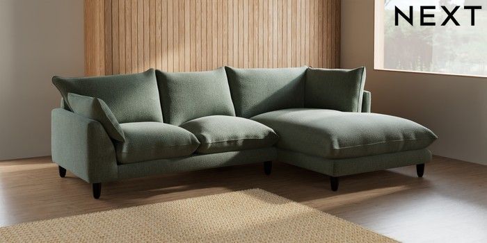 7.2.6 Buy Noa Deep Relaxed Sit Medium Corner Chaise - Right Hand Chunky Texture Mid Forest Green High Leg - Dark from the Laura Ashley online shop Click here to use our website with more accessibility support, for example screen readers
