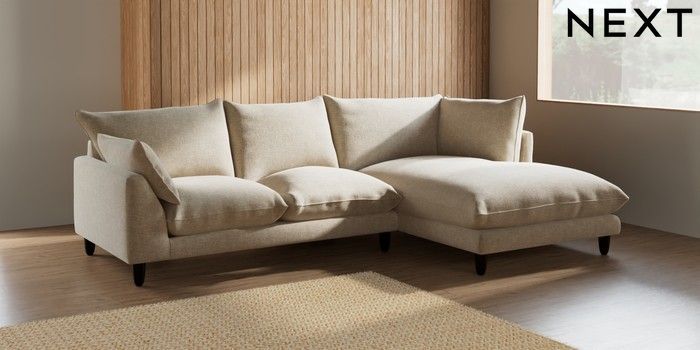 7.2.6 Buy Noa Deep Relaxed Sit Medium Corner Chaise - Right Hand Chunky Weave Cream High Leg - Dark from the Laura Ashley online shop Click here to use our website with more accessibility support, for example screen readers