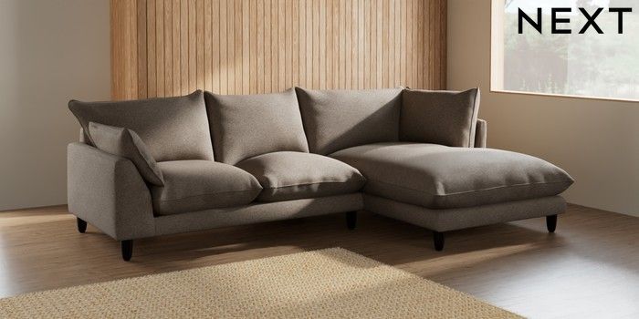 7.2.6 Buy Noa Deep Relaxed Sit Medium Corner Chaise - Right Hand Chunky Weave Dark Natural High Leg - Dark from the Laura Ashley online shop Click here to use our website with more accessibility support, for example screen readers