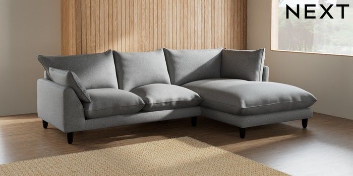 7.2.6 Buy Noa Deep Relaxed Sit Medium Corner Chaise - Right Hand Chunky Weave Mid Grey High Leg - Dark from the Laura Ashley online shop Click here to use our website with more accessibility support, for example screen readers