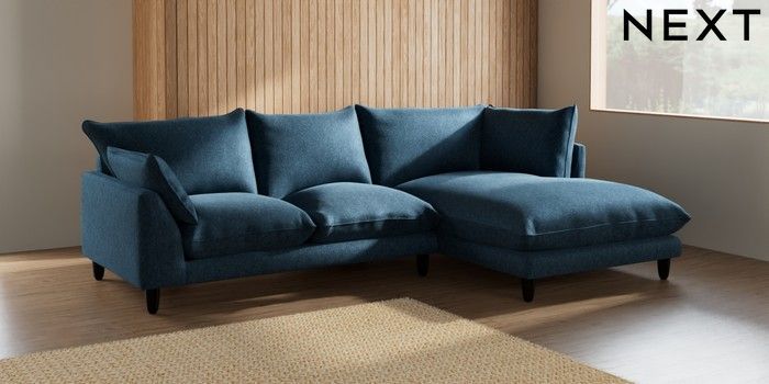 7.2.6 Buy Noa Deep Relaxed Sit Medium Corner Chaise - Right Hand Cotswold Chenille Dark Blue High Leg - Dark from the Laura Ashley online shop Click here to use our website with more accessibility support, for example screen readers