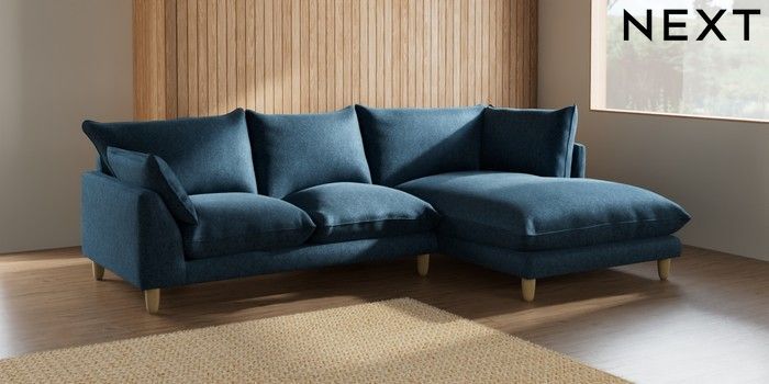 7.2.6 Buy Noa Deep Relaxed Sit Medium Corner Chaise - Right Hand Cotswold Chenille Dark Blue High Leg - Light from the Laura Ashley online shop Click here to use our website with more accessibility support, for example screen readers
