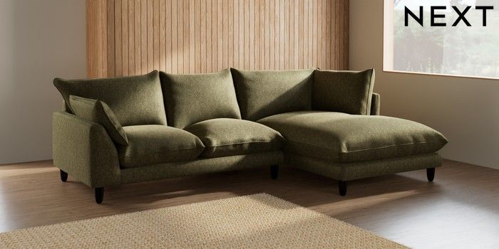 7.2.6 Buy Noa Deep Relaxed Sit Medium Corner Chaise - Right Hand Cotswold Chenille Dark Green High Leg - Dark from the Laura Ashley online shop Click here to use our website with more accessibility support, for example screen readers
