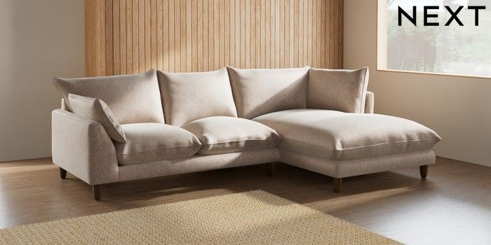 7.2.6 Buy Noa Deep Relaxed Sit Medium Corner Chaise - Right Hand Cotswold Chenille Light Natural High Leg - Mid from the Laura Ashley online shop Click here to use our website with more accessibility support, for example screen readers