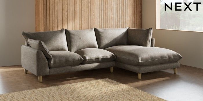 7.2.6 Buy Noa Deep Relaxed Sit Medium Corner Chaise - Right Hand Cotswold Chenille Mid Mink Brown High Leg - Light from the Laura Ashley online shop Click here to use our website with more accessibility support, for example screen readers