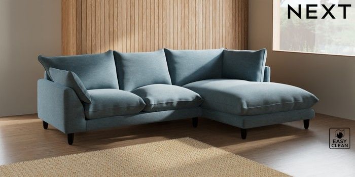 7.2.6 Buy Noa Deep Relaxed Sit Medium Corner Chaise - Right Hand Fine Chenille Easy Clean Mid Blue High Leg - Dark from the Laura Ashley online shop Click here to use our website with more accessibility support, for example screen readers