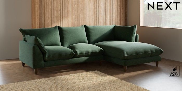 7.2.6 Buy Noa Deep Relaxed Sit Medium Corner Chaise - Right Hand Fine Chenille Easy Clean Mid Khaki Green High Leg - Mid from the Laura Ashley online shop Click here to use our website with more accessibility support, for example screen readers